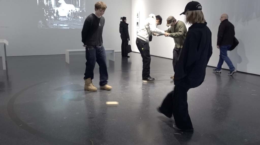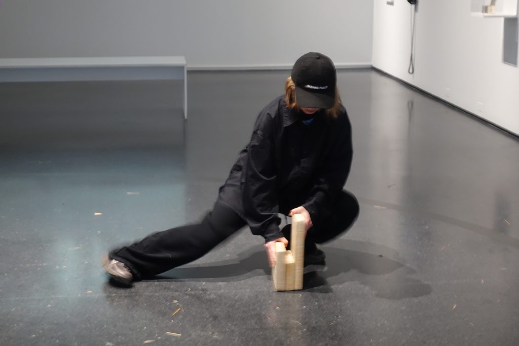 My reenactment began with an act of simple play and haptic engagement, allowing the instruction to unfold through my body’s intuitive response to the material. This process soon evoked a distinct childhood memory of using found objects to sense texture and explore the edges of my world. During performance, I sought to gratefully honor Ono’s open score, which opens a space for my interpretation and the audience’s interaction. It became a site where the score and improvisation could meet. Through playing and listening, I rediscovered what matters through the simple, profound act of relating to an everyday object—a wood piece.